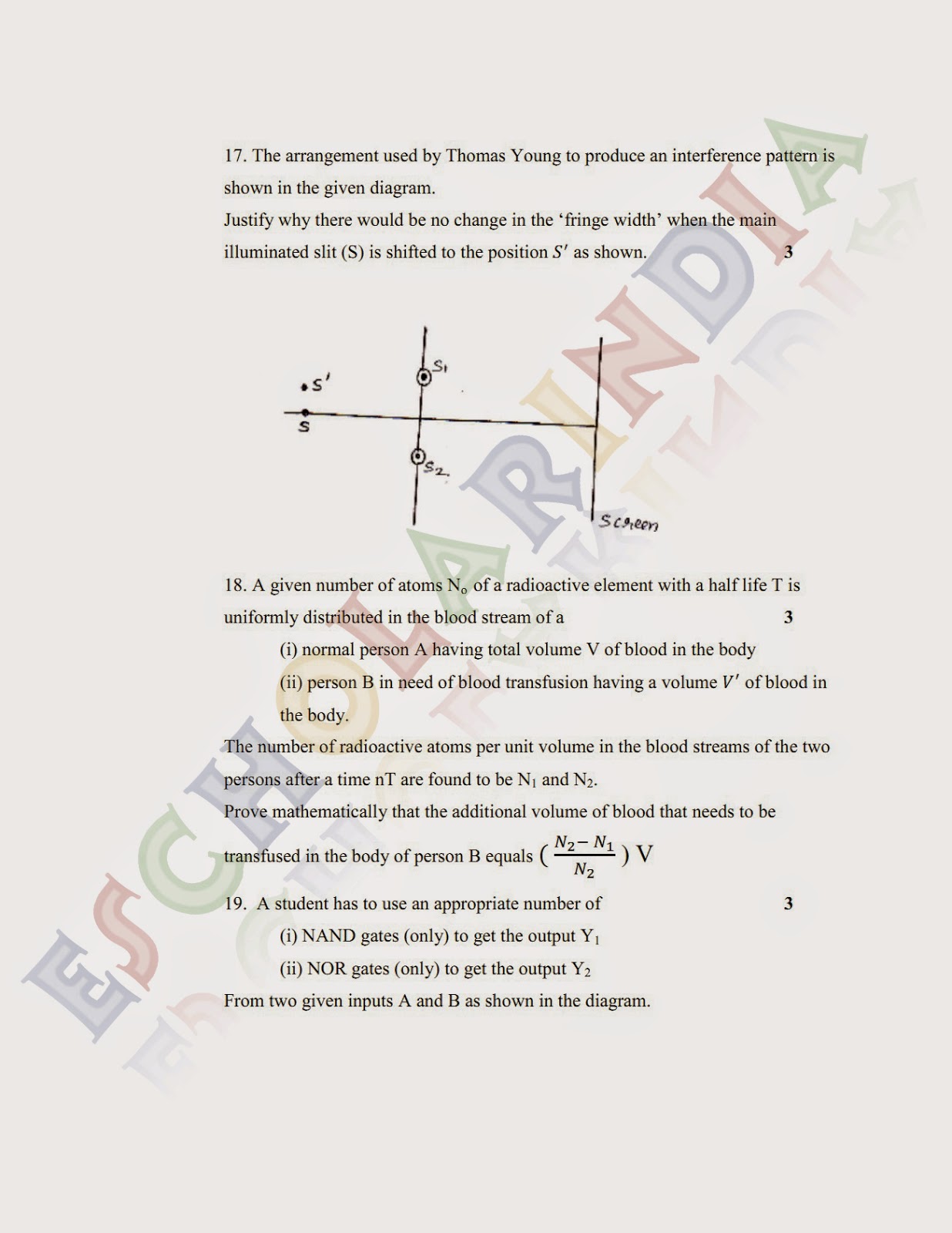 CBSE Class 12th - Physics Sample Paper Questions - Board 2015